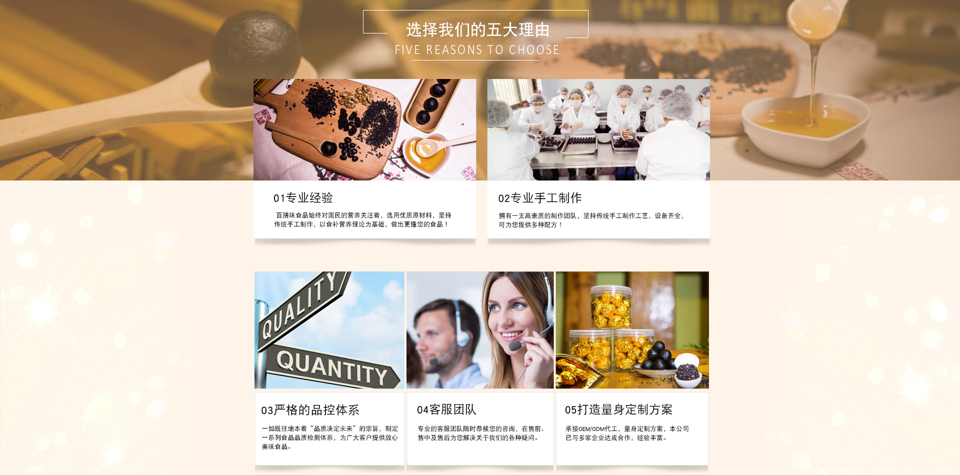 山东百膳味食品有限公司是黑芝麻丸、红豆薏米丸、柠檬膏、花茶、人参桂圆丸等产品专业生产加工的公司,拥有完整、科学的质量管理体系。山东百膳味食品有限公司的诚信、实力和产品质量获得业界的认可。欢迎各界朋友莅临参观、指导和业务洽谈。