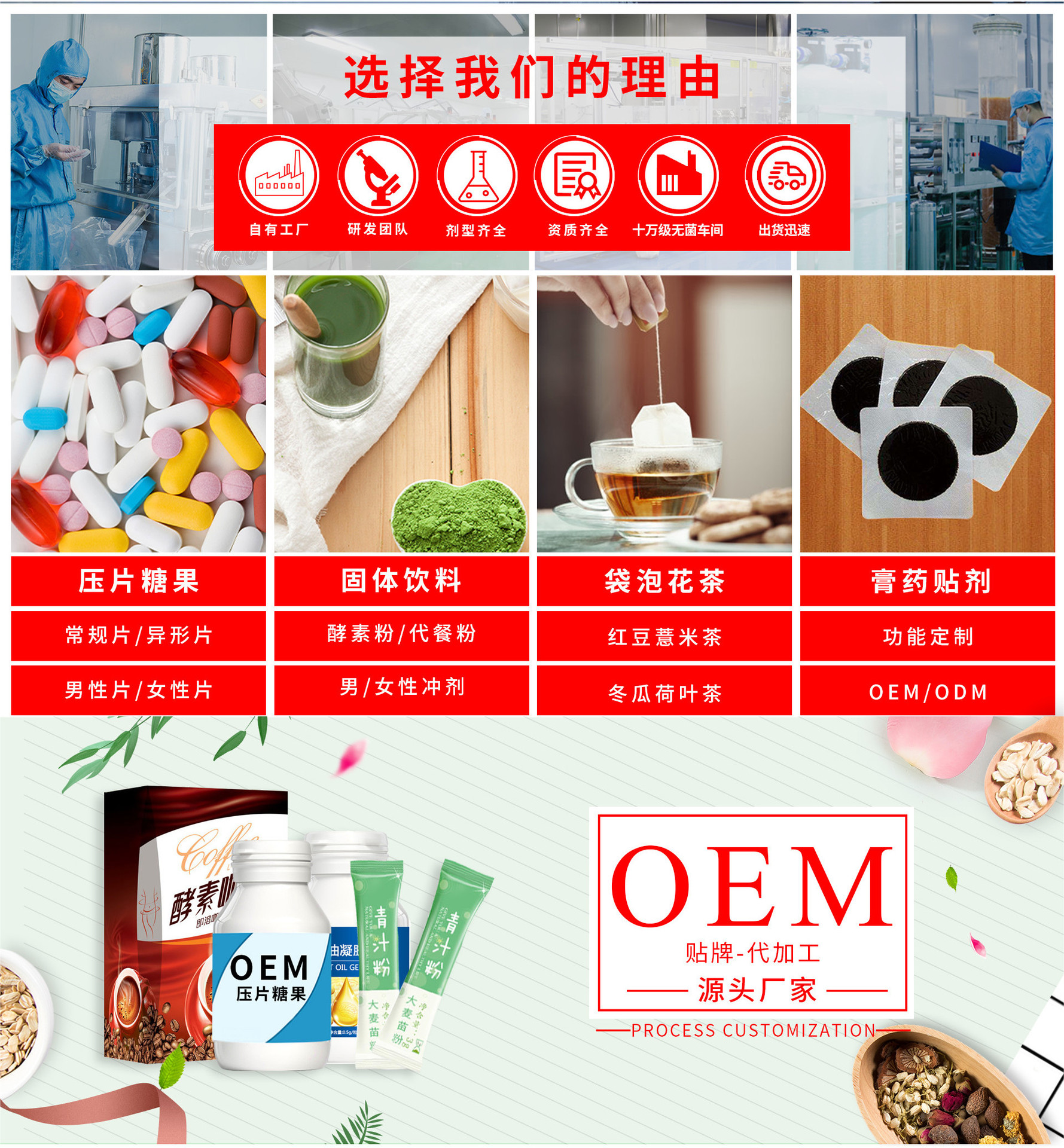 郑州泽誉堂医药科技有限公司是压片糖果代加工、凝胶糖果代加工、固体饮料代加工、水蜜丸代加工、袋泡茶代加工、粉剂颗粒代加工等产品专业生产加工的公司,拥有完整、科学的质量管理体系。郑州泽誉堂医药科技有限公司的诚信、实力和产品质量获得业界的认可。欢迎各界朋友莅临参观、指导和业务洽谈。