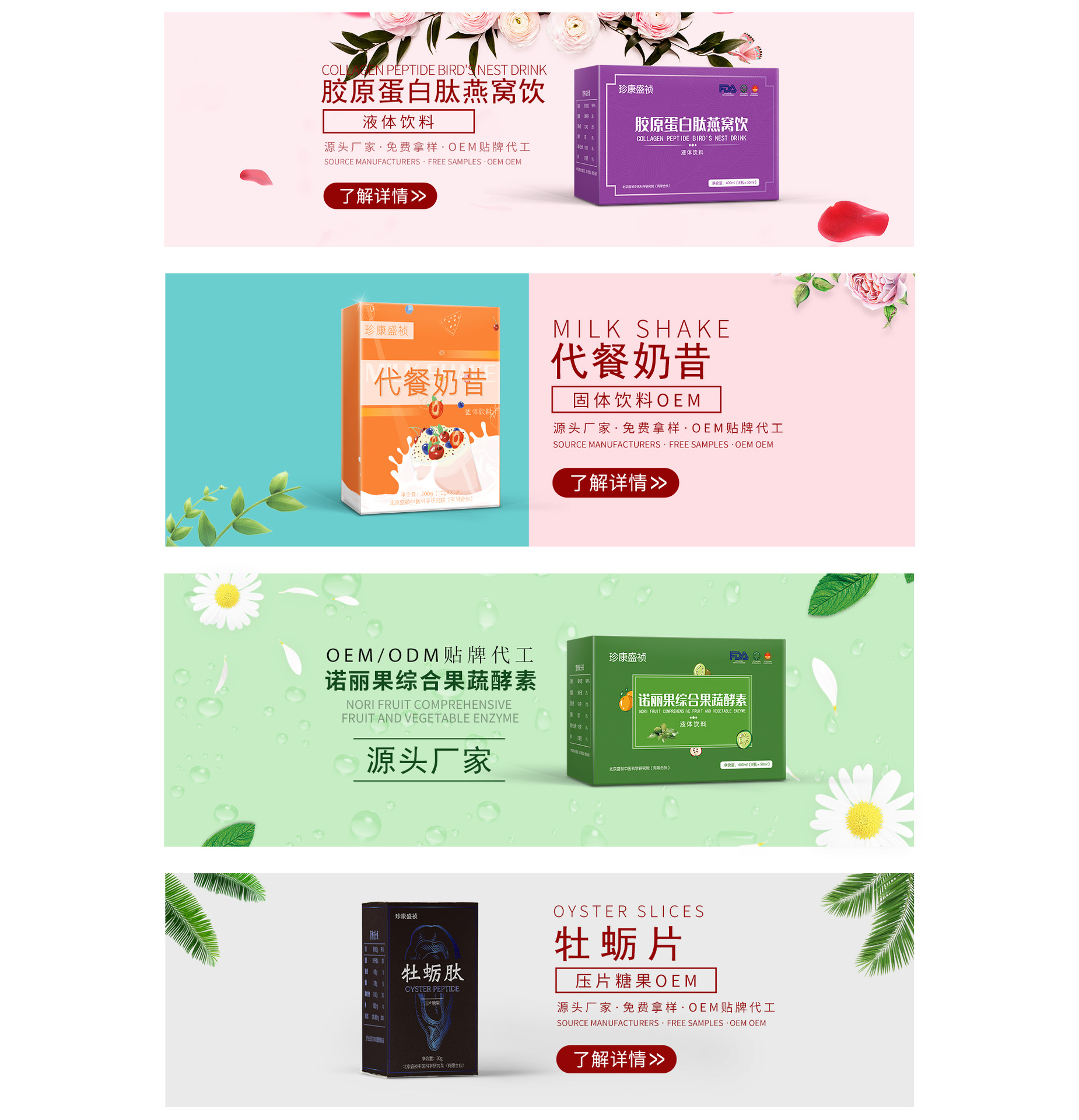 盛祯生物科技集团有限公司是一家集功能性食品研发、生产、销售于一体的高科技型企业,一直专注于营养健康领域,坚持以“至真至美、饮水思源”的理念,秉承中华传统中医养生之道,结合现代营养学,以先进的生产技术、优质的产品、维信践诺的服务品质,为广大客户创造价值、缔造健康。 盛祯生物科技集团有限公司建立了一个经验丰富的设备保障、技术研发、生产管理团队,为生产高效和产品质量提供了有力的保障,拥有现代化的粉剂、颗粒剂、片剂、代餐类、驼奶粉系列、饮品口服液、袋泡茶、丸剂生产线,并形成了产品代加工生产链。 盛祯健康品,用心为大众,盛祯作为一家严谨、负责任的企业,凭借对行业的了解和国际营养现的认知,盛祯一直希望致力于提高国人的健康和营养认知观念,推进中国营养保健产业的良性发展,共同为中国人管理健康!
