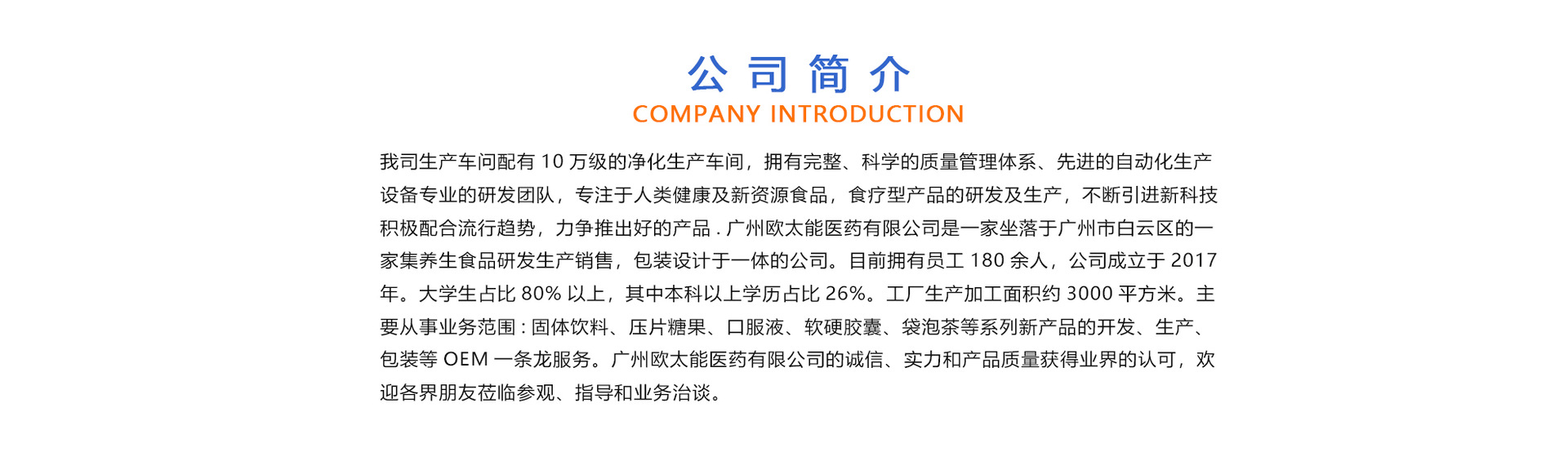广州欧太能医药有限公司是等产品专业生产加工的公司,拥有完整、科学的质量管理体系。广州欧太能医药有限公司的诚信、实力和产品质量获得业界的认可。欢迎各界朋友莅临参观、指导和业务洽谈。