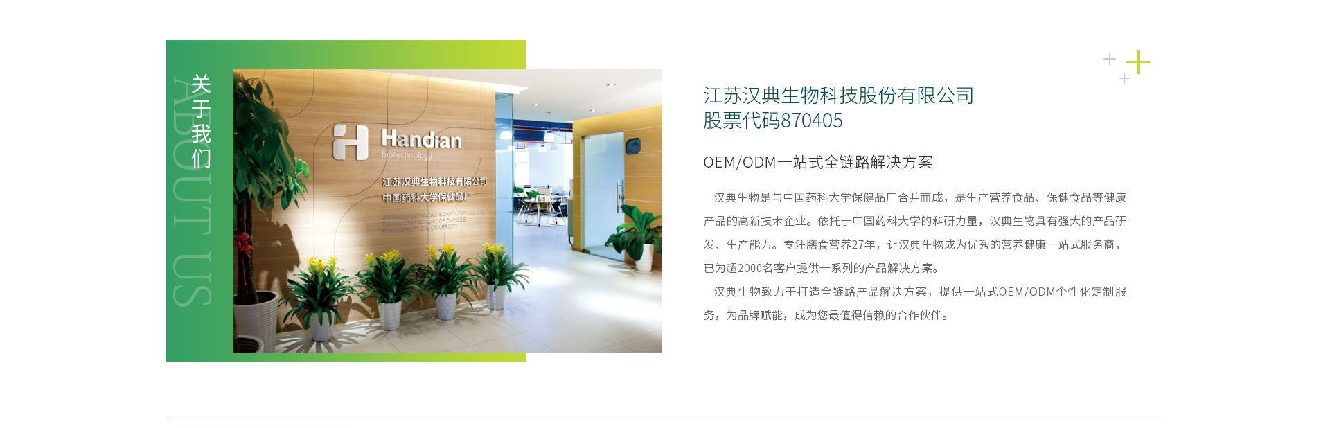 江苏汉典生物科技股份有限公司从事营养食品、保健食品的研发、生产和销售。公司产品有固体饮料、压片糖果、凝胶糖果。公司获得2016年南京市保健食品质量安全分级监管A级企业、2016年南京市栖霞区食品质量安全达标示范企业等荣誉。