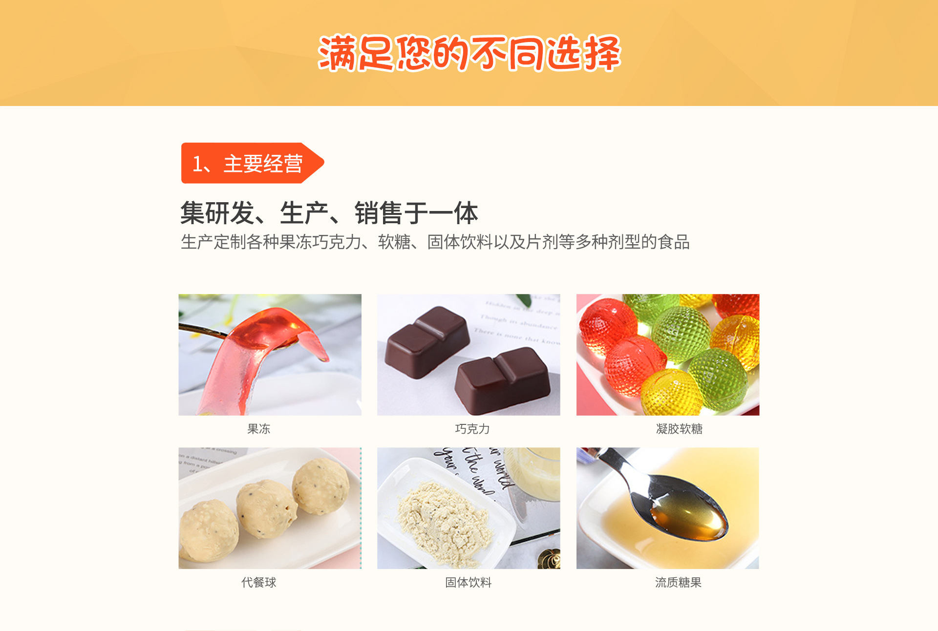 江门市新创力食品有限公司是食品、糖果、果冻、代可可脂巧克力制品、固体饮料等产品专业生产加工的公司,拥有完整、科学的质量管理体系。江门市新创力食品有限公司的诚信、实力和产品质量获得业界的认可。欢迎各界朋友莅临参观、指导和业务洽谈。