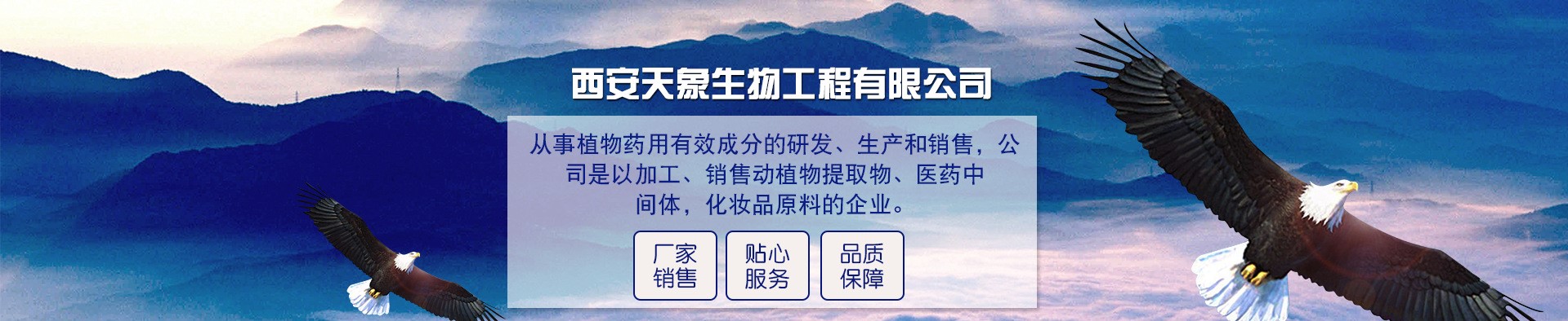 西安天象生物工程有限公司是从事植物有效成分的研发、生产和销售的有限公司。是一家致力于植物提取物,医药中间体的研究、开发、生产与销售为一体的高新技术企业。公司拥有自己的研发队伍,并且与当地多所高校和研究机构有着紧密的合作关系。公司拥有完善的实验设施和先进的检测仪器,同时我们拥有配套齐全的用于植物提取物提取、分离、合成、发酵等生产设备和严格的质量控制体系,从各个环节保证了产品质量的稳定性。 我们坚信质量是企业成长的基石,工厂严格按GMP标准建设, 公司拥有一套较先进的多功能中草药活性天然产物提取设备。此外还有6m3大型提取罐四台套,组合回收装置二台套,φ400×3800蒸馏塔二台,400×13000精馏塔一台,30m3高醇罐二个,20m3低醇罐一个,l200kg/h双效蒸发器一套,Y-150喷雾干燥塔一套,2m3真空干燥箱一台,四吨蒸汽锅妒一台等主要生产设备。研发部门配备有高效液相色谱、气相色谱、紫外分光光度计、微生物检测等先进检测仪器等设备,基本能满足常规中草药有效成份的提取加工的生产需要。 天象生物员工奉行“求实,奋进”的方针,以创新为动力,以质量求生存,以发展求壮大。客户的要求是我们天象人永远追求的目标,天象生物竭诚为客户提供好产品...