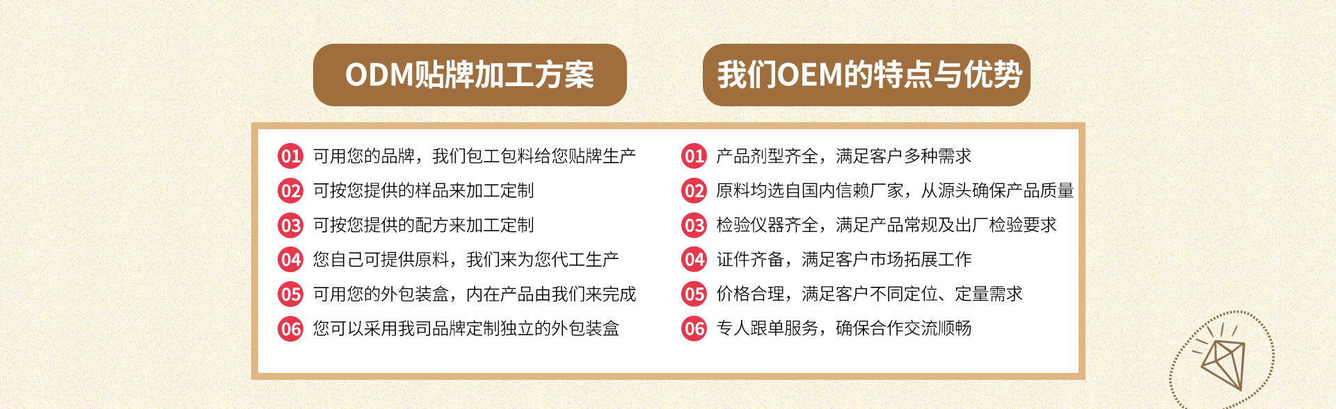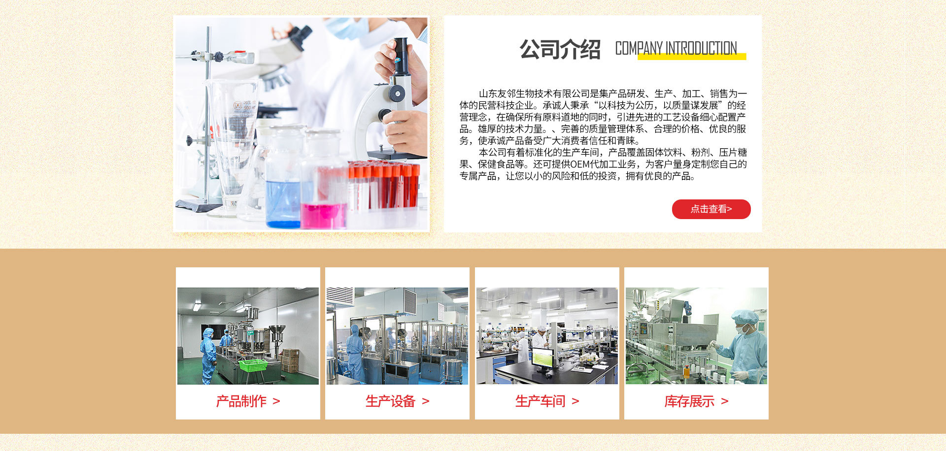 本公司有着标准化的生产车间,产品覆盖固体饮料、粉剂、压片糖果、特膳食品、保健食品等。还可提供OEM代加工业务,为客户量身定制您自己的专属产品,让您以小的风险和低的投资,拥有优质的产品。山东有邻药业有限公司真诚欢迎广大新老客户莅临指导,洽谈业务!我们一直在努力,有大家的关注和支持,相信我们会做得更好!