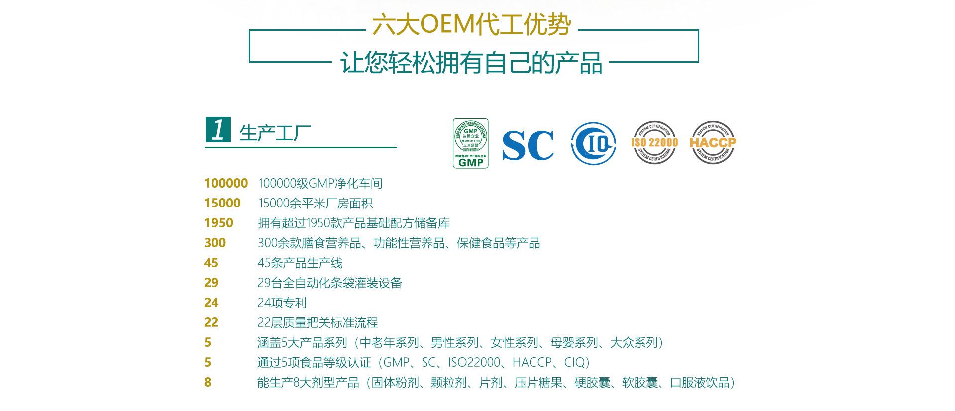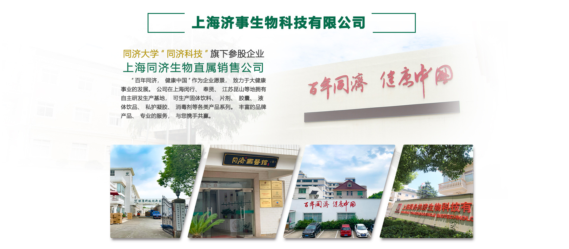 上海济事生物科技有限公司隶属上海同济子品牌,是一家膳食营养食品代工研发生产加工企业一体化高新企业,上海同济公司具有24年的营养保健品研发、ODM/OEM一站式生产型企业,生产范畴涵盖保健食品、肽加工,营养强化食品加工及固体饮料加工等多个领域,生产软胶囊、片剂、硬胶囊、粉剂、压片糖果、固体饮料、袋泡茶等多个剂型,同时公司拥有GMP认证和SC认证的4500平方米10万级标准厂房,拥有从德国、日本引进的具行业平均水准的科研仪器、生产设备、全自动包装流水线和质量控制检验仪器,能自主完成油水包埋、超临界萃取、真空无菌包装等前沿的工艺和技术。 济事母公司为上海同济生物作为国内老牌保健食品ODM/OEM代加工生产厂家,同济生物拥有25年保健食品领域内的GMP、SC、HACCP、ISO22000等认证证书,并一直深耕中国保健食品ODM/OEM代加工产业。25年以来同济生物以稳定的质量,专业的服务和丰富的产品线赢得同行业的普遍认可,并与国内众多大型保健食品公司进行合作。
