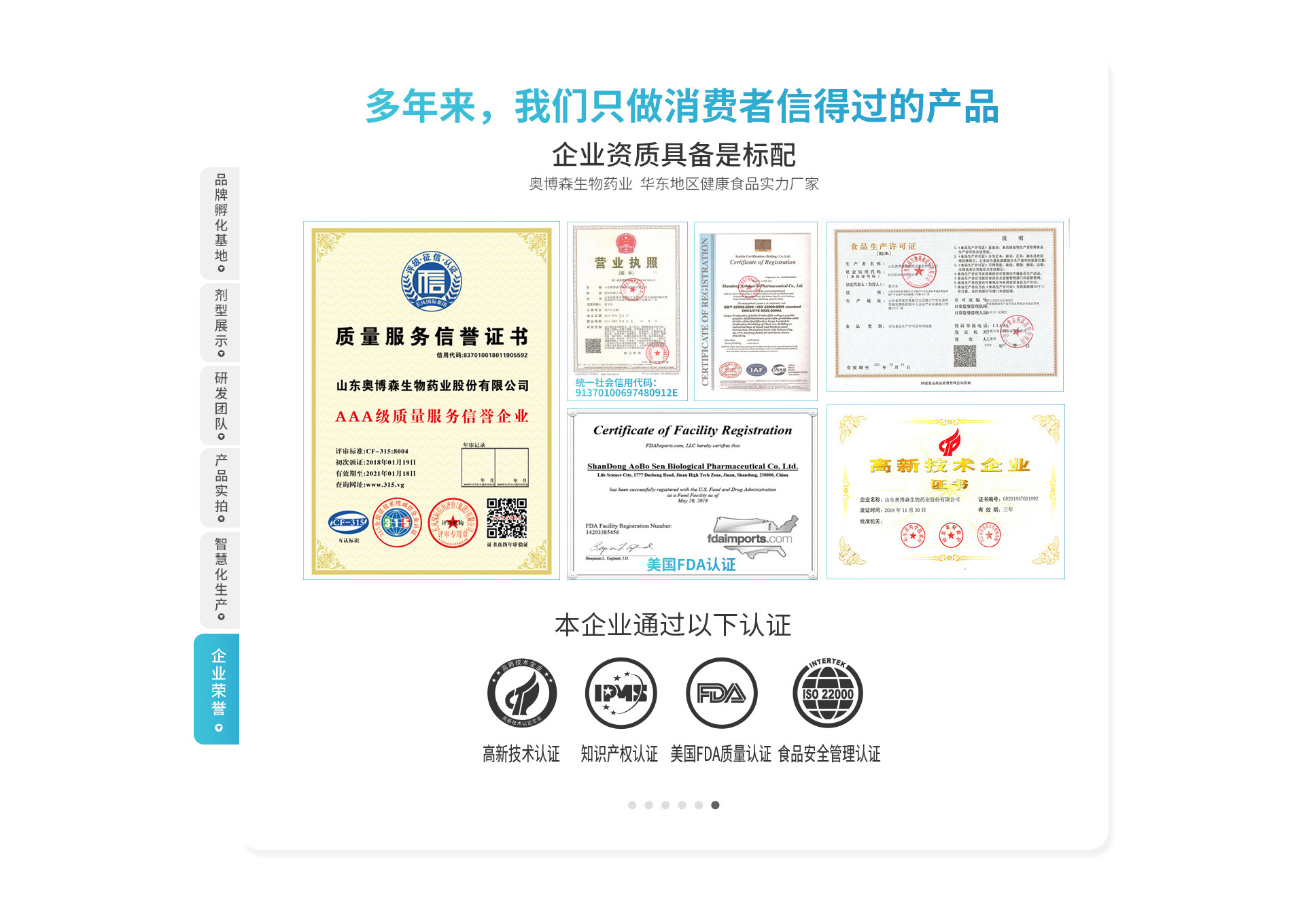 山东奥博森生物药业股份有限公司于2010年成立。 总部位于山东省济南市,法定代表人孙立智。 奥博森集团产业涵盖微生物学、营养学、中药学和细胞生物学等四大领域。专门从事益生菌、酶制剂、医用营养食品、运动营养食品、营养补充剂、益生菌发酵植物饮品、植物干细胞、动物干细胞及衍生物的开发和生产,并可根据客户需求量身定制。是一家集科研、开发、生产、经营为一体的高科技集团化企业,拥有专属的科研研发机构,生产基地和生产线。 拥有包括高密度、高稳定、高活性冻干粉的生产技术,特殊的微囊化包被技术、活性肽研究与生产技术、中药发酵和浓缩精馏技术、高密度益生菌发酵技术、动植物干细胞培养技术等。