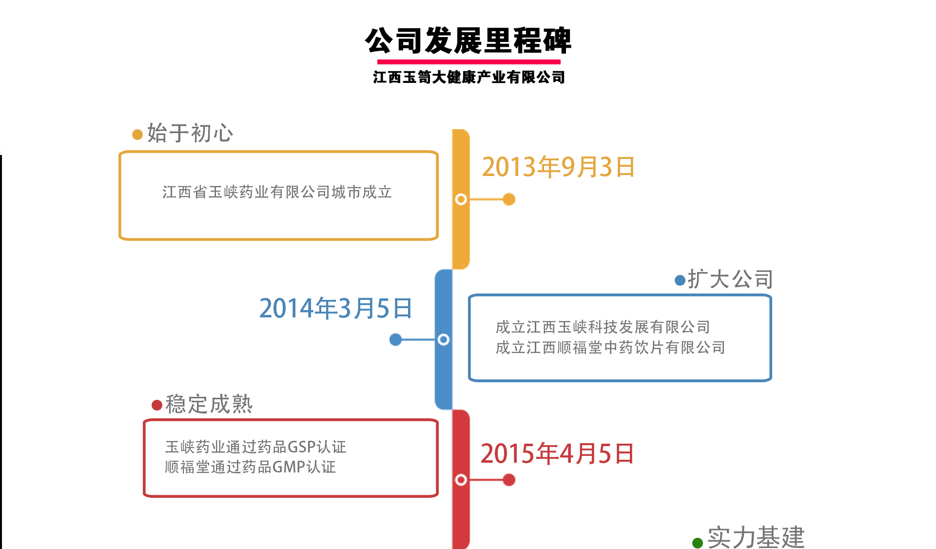 江西玉笥大健康产业有限公司位于具有“国家森林城市”、“国家园林城市”之美誉的江西-峡江,座落于风景秀丽,气象万千的道教洞天福地玉笥山脚下,这里物华天宝、人杰地灵,环境优美,交通便利,区位优势得天独厚,铁路、公路四通八达。 公司成立于2018年9月14日,公司是一家集“科研、生产、销售”为一体大健康食品生产企业,公司拥有一批具有科研管理、生产管理、销售管理、新产品开发经验的各类高素质人才。 公司经营范围涵盖普通食品、保健食品、饮料(固体饮料、液体饮料类)、压片糖果、方便食品、婴幼儿及其他配方谷粉(婴幼儿配方谷粉)生产及销售。 公司以“为健康服务”为企业宗旨,以中医药为核心,发展绿色健康食品产业,我们秉承“传承精华,守正创新”的精神,倾力研发打造“黄精”系列健康产品,目前品种已涵盖黄精膏、黄精米粉、黄精饮料等领域。 公司以“质量第一,用户至上”为经营理念。