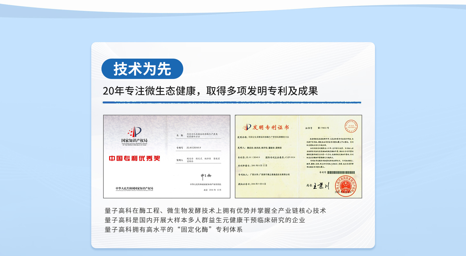 量子高科(广东)生物有限公司是睿智医药旗下全资控股公司,公司专注微生态营养领域20年,在酶工程、微生物发酵技术上拥有绝对优势并掌握全产业链的核心技术。经营业务涵盖以益生元为代表的微生态营养健康配料、ODM和功能性食品的研发、生产与销售。企业秉承事在人为的核心价值观,发挥在产业链上技术研发、规模化生产和资源整合方面的优势,为客户提供微生态营养产品商品化、技术信任状和整合营销传播在内的一站式解决方案。