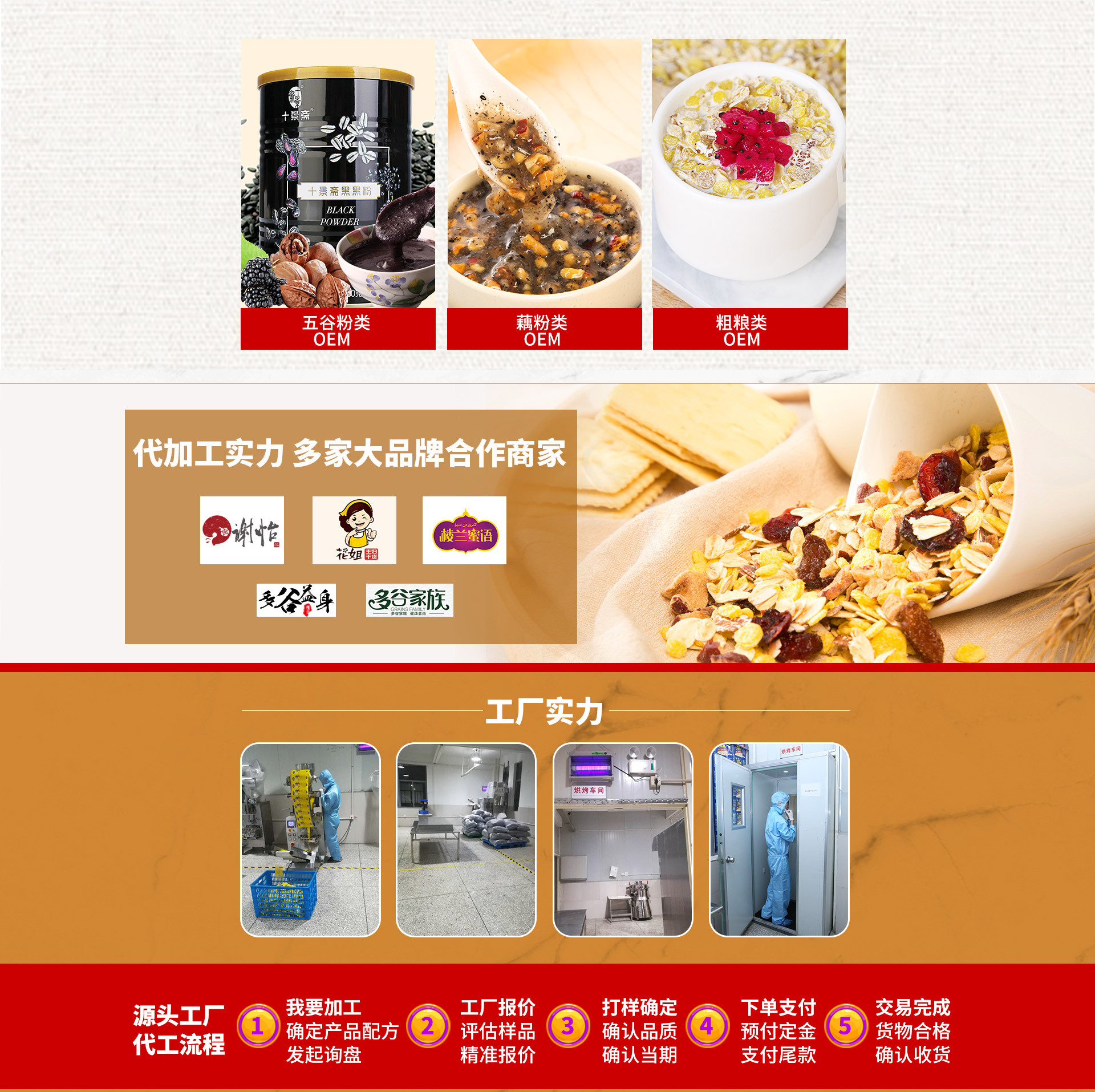 杭州景斋食品有限公司专注健康谷物代餐系列食品,包含了免煮代餐粥、代餐粉、代餐丸等多款产品,经营渠道包含了线上线下多种渠道,其中十景斋品牌产品已在1688、天猫及其他电商平台有多家店铺;工厂拥有自主研发能力,亦承接代工贴牌业务,支持打样,目前和老金磨方、谢怡、绿滋肴等多家线上下品牌合作提供提供代工业务。