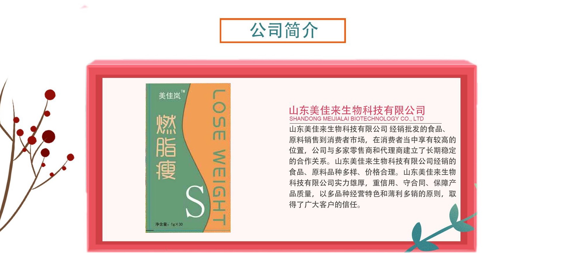 山东美佳来生物科技有限公司 经销批发的食品、原料畅销消费者市场,在消费者当中享有较高的地位,公司与多家零售商和代理商建立了长期稳定的合作关系。山东美佳来生物科技有限公司经销的食品、原料品种齐全、价格合理。山东美佳来生物科技有限公司实力雄厚,重信用、守合同、保证产品质量,以多品种经营特色和薄利多销的原则,赢得了广大客户的信任。