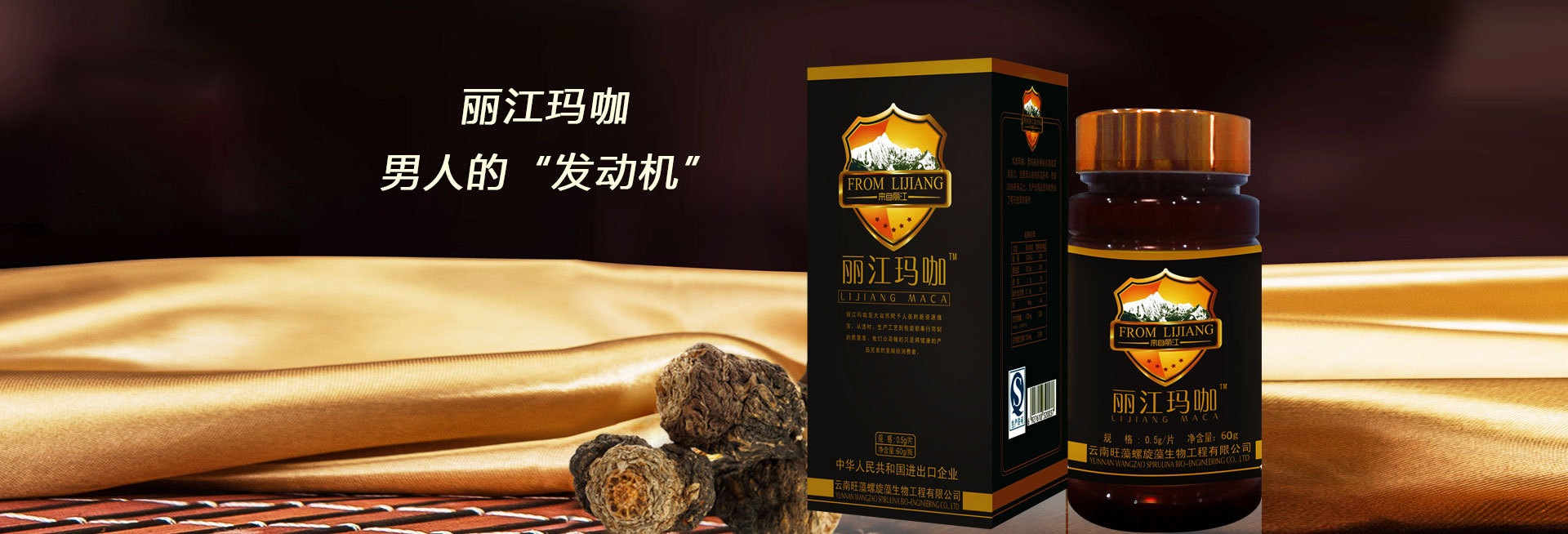旺藻牌天然螺旋藻精片、玛卡精片、核桃油、松花粉精片等系列产品,经云南省权威机构检测各项指标均达到国家保健食品的卫生安全标准。产品远销国内、外及东南亚市场,深受消费者的青睐。