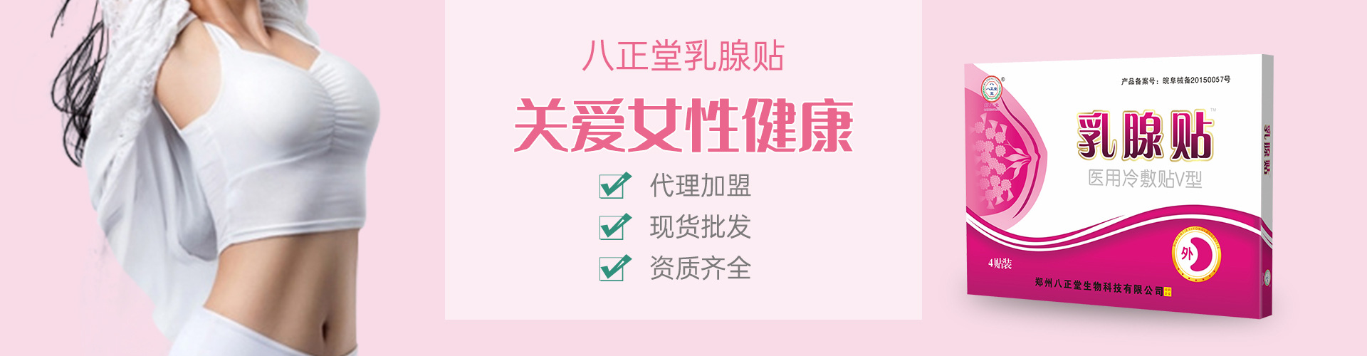 郑州八正堂生物科技有限公司以服务人类健康为己任,让好产品走进千家万户,以“开发好产品、造福全社会”为企业使命。目前产品涉及六个大类,四十多个品种,其中主营的有国妆特字狐臭喷剂、减肥贴、失眠贴、乳腺贴、滑膜炎贴、儿科贴剂类、儿科口服类、风湿骨病类等各种外用贴剂。产品目前已在全国20多个省市及东南亚各国有代理销售,产品使用安全方便,品质稳定,效果显著,价格低廉,深受业界同仁赞誉和广大消费者的信赖。