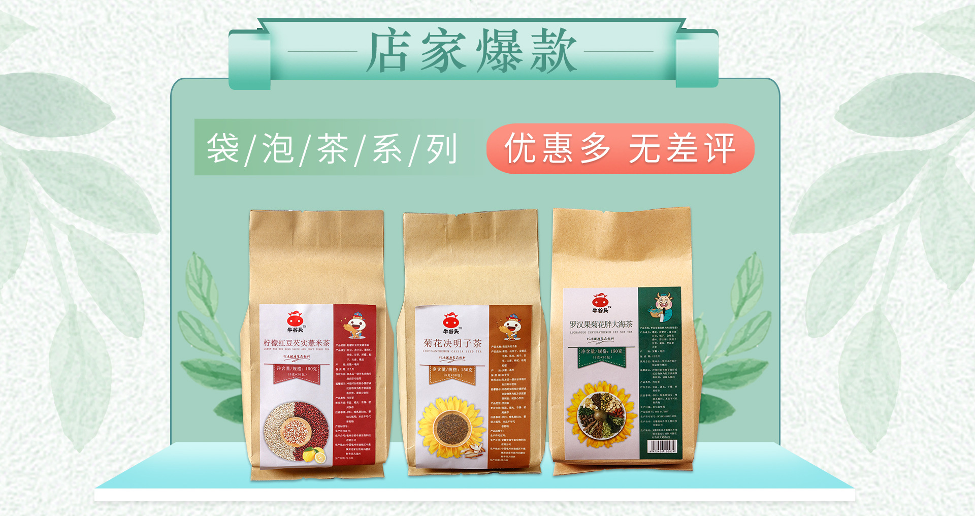 安徽省福牛堂生物科技有限公司是代用茶、花茶、花果茶、组合花茶、五宝茶、女士茶,罐装花茶等产品专业生产OEM代加工的公司,拥有完整、科学的质量管理体系。安徽省福牛堂生物科技有限公司的诚信、实力和产品质量获得业界的认可。欢迎各界朋友莅临参观、指导和业务洽谈。 公司一直以来主要销售针对批发,定制,零售,一件代发,实体店的货源供货。好评多多,公司一直以做好产品为主要的理念在发展,希望继续突破。