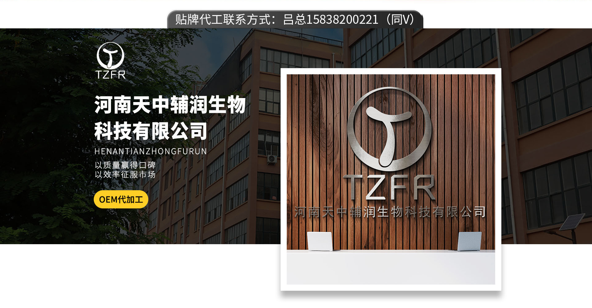河南天中辅润生物科技有限公司,注册资金1000万元,是一家综合性健康生物制品企业,主营健康食品,SC营养食品OEM、ODM、招商等业务。是一家专业从事高新生物技术研究和健康营养品开发的研发型企业,由国内名牌大学生命科学园多位专家教授、博士等人员主导研发,拥有适于不同年龄结构人群的健康营养品组方。在国内享有其技术和营养品组方使用权;产品原料主要根据国家颁布的《新资源食品目录》和《药食同源目录》,原料产地也经过严格把关;产品做到有方可依、有据可查。目前公司产品剂型涵盖压片糖果、片剂、冲剂和固体饮料等多种剂型的生产流水线。并建立了全新现代规范化十万级净化车间,引进一系列先进生产设备,制粒混合设备、干燥设备、高速压片机、激光喷码机以及全自动灌装线等多种剂型的生产流水全新的现代化规范化生产厂区、装备多台生产设备以及成立专项实验室,配备先进实验设备,引进国内大学的相关专业