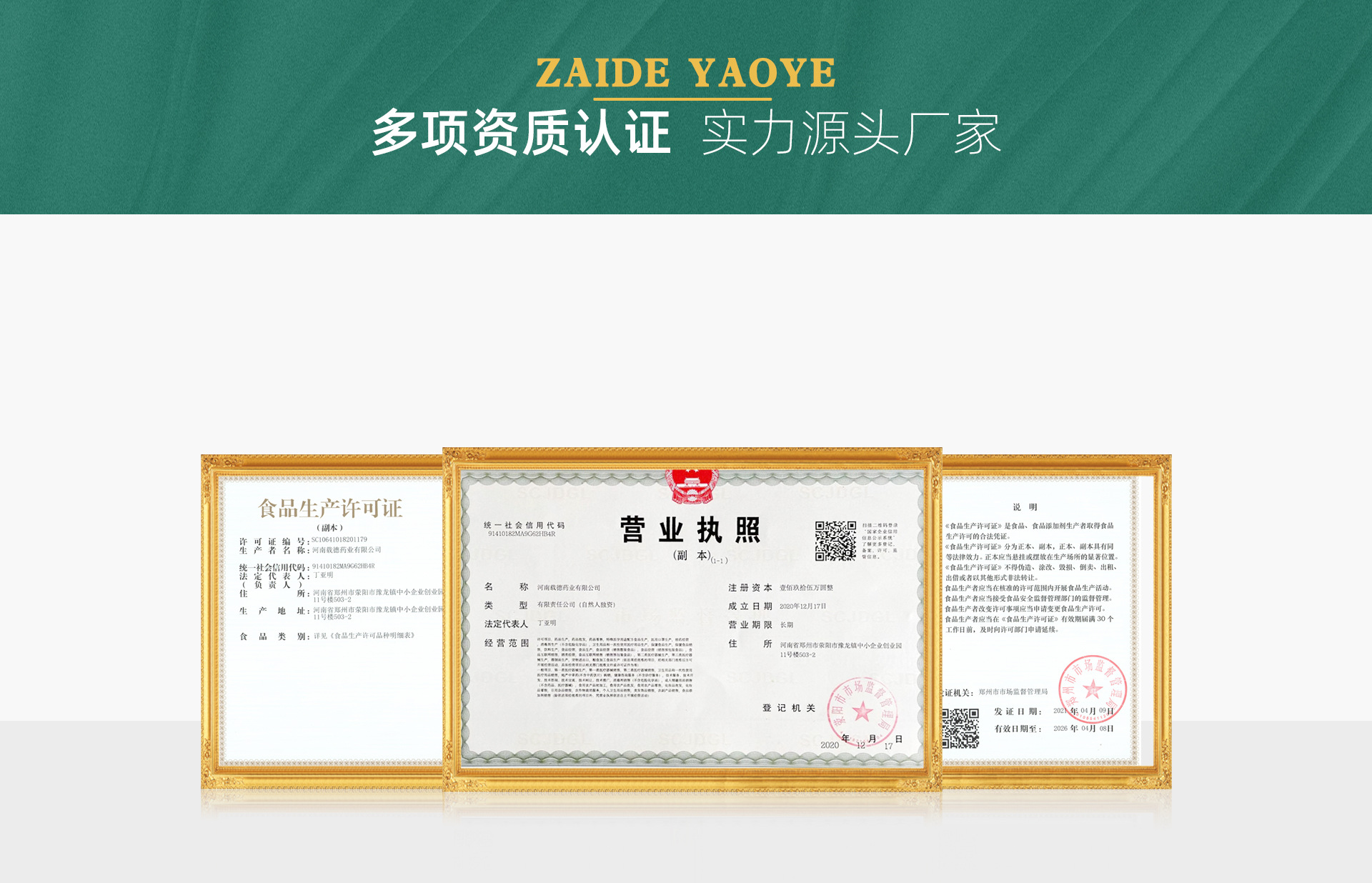 河南载德药业有限公司是专注于压片糖果、固体饮料、食品丸剂、膏方膏滋、五谷代餐冲调OEM ODM贴牌代工等产品的生产加工公司,拥有3000平GMP认证车间和硕士生及食品本科毕业生组成的研发团队以及多年生产和销售经验。拥有完整、科学的质量管理体系。自公司成立以来,始终秉持优质、健康的生产理念,以质量赢得口碑,以效率征服市场,严格执行国家食品安全规范生产,将中医药膳学与现代食品科技结合,为广大客户提供高品质、高营养的健康食品。自强不息,厚德载物!河南载德药业有限公司的诚信、实力和产品质量获得业界的认可。欢迎各界朋友莅临参观、指导和业务洽谈。