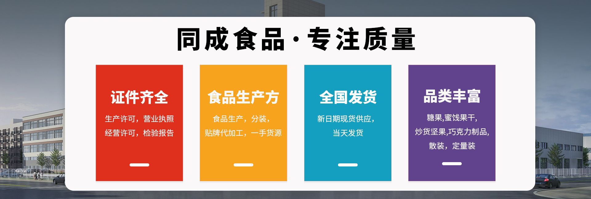 汕头市同成食品有限公司是糖果、蜜饯、干果、坚果等产品专业生产加工的公司,拥有完整、科学的质量管理体系。汕头市同成食品有限公司的诚信、实力和产品质量获得业界的认可。欢迎各界朋友莅临参观、指导和业务洽谈。